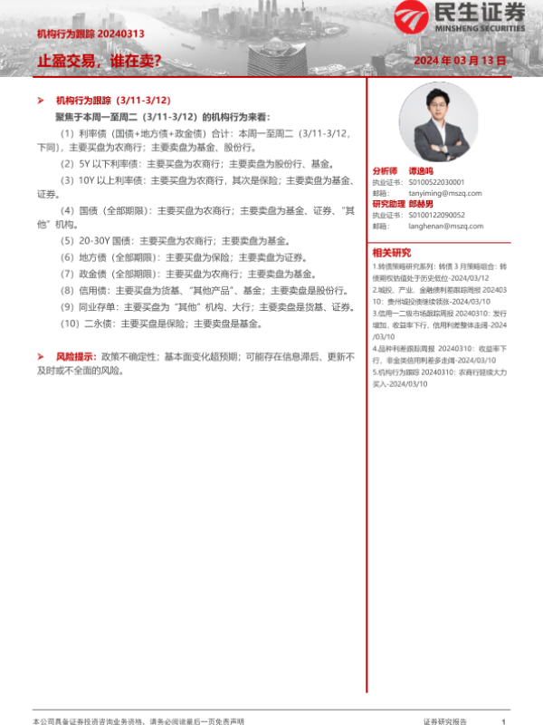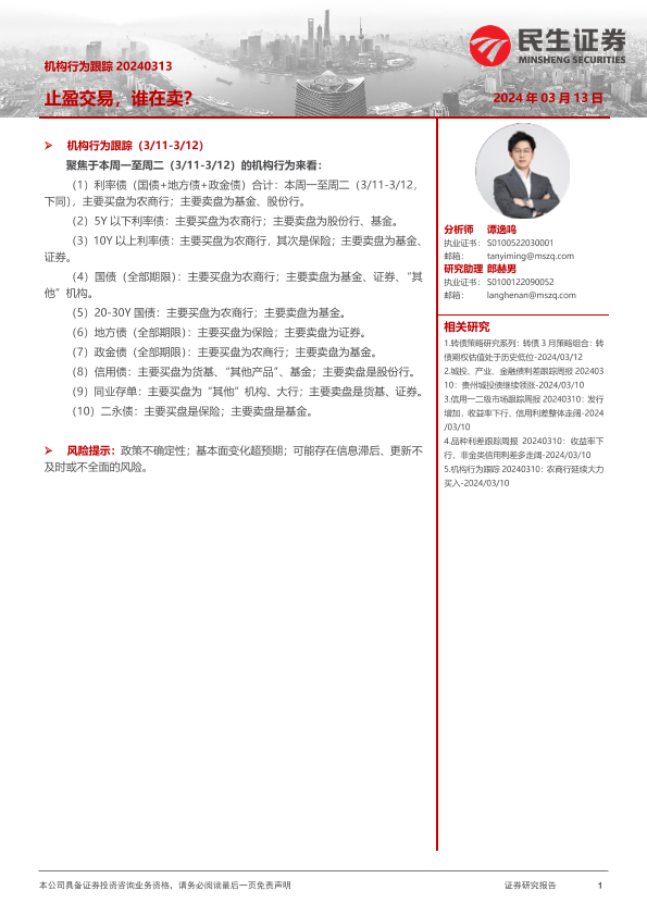 【民生证券】【20240313】机构行为跟踪:止盈交易,谁在卖?-10页