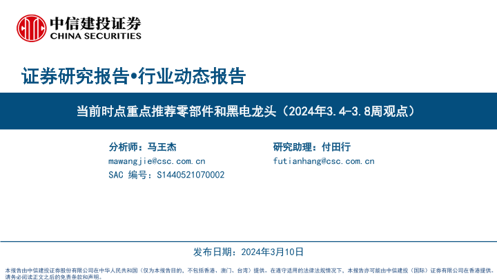 【中信建投证券】【20240310】家电行业:当前时点重点推荐零部件和黑电龙头(2024年3.4-3.8周观点)-28页