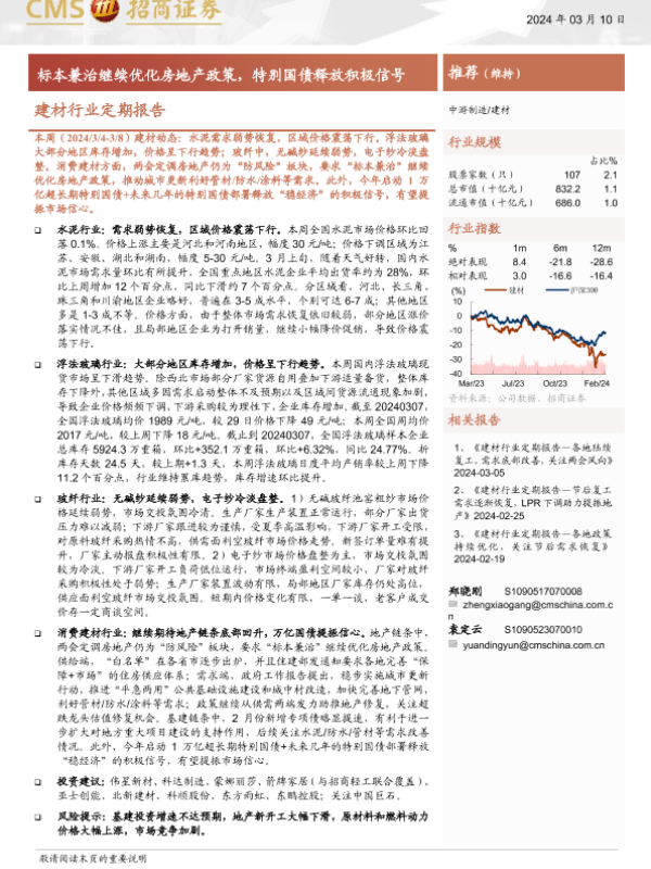 【海通证券】【20240310】建材行业定期报告:标本兼治继续优化房地产政策,特别国债释放积极信号-22页