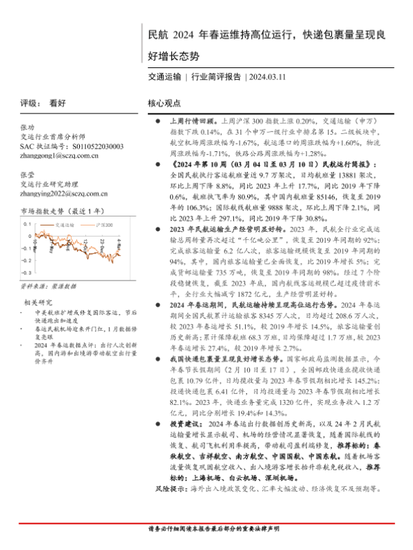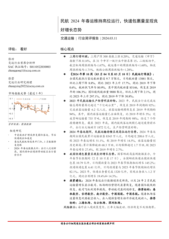 【首创证券】【20240311】民航 2024年春运维持高位运行,快递包裹量呈现良好增长态势-15页