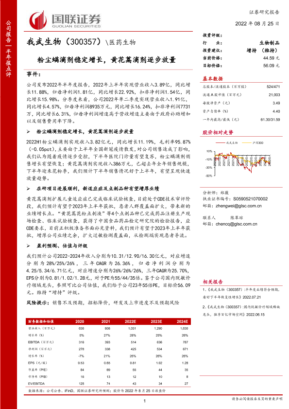 【国联证券】【20220825】粉尘螨滴剂稳定增长,黄花蒿滴剂逐步放量-3页