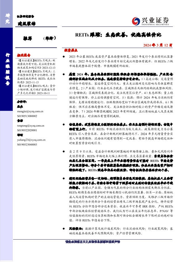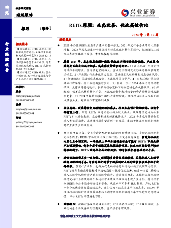 【兴业证券】【20240312】建筑装饰行业REITs跟踪:生态改善,优选高性价比-55页