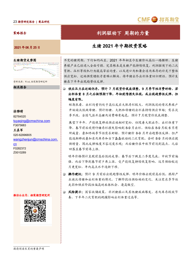 【招商期货】【20210625】生猪2021年中期投资策略:利润驱动下,周期的力量-31页