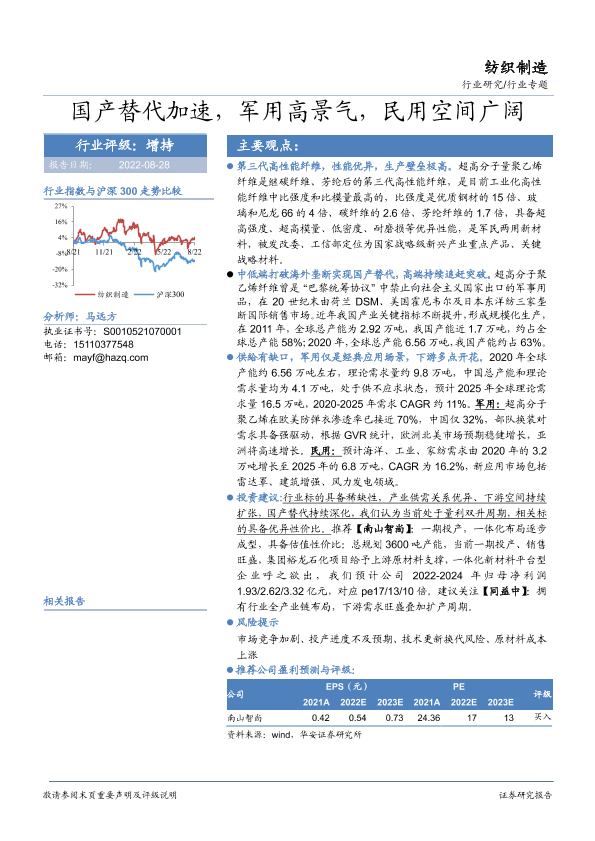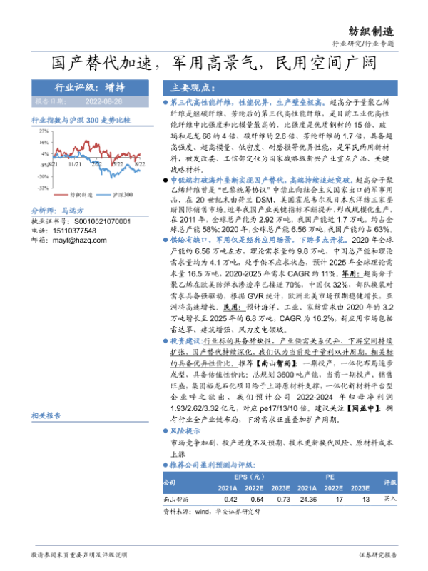 【华安证券】【20220828】纺织制造行业专题:国产替代加速,军用高景气,民用空间广阔-31页