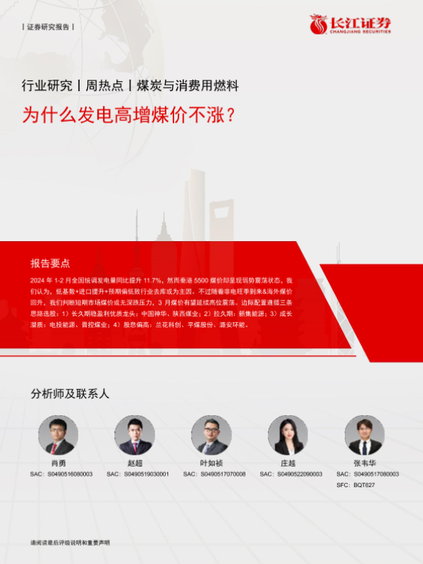 【长江证券】【20240309】煤炭与消费用燃料行业:为什么发电高增煤价不涨?-15页