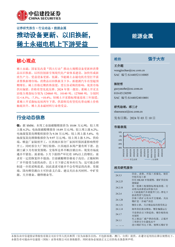 【中信建投证券】【20240310】能源金属行业:推动设备更新、以旧换新,稀土永磁电机上下游受益-12页