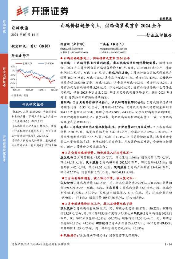 【开源证券】【20240314】农林牧渔行业点评报告:白鸡价格趋势向上,供给偏紧或贯穿2024全年-12页