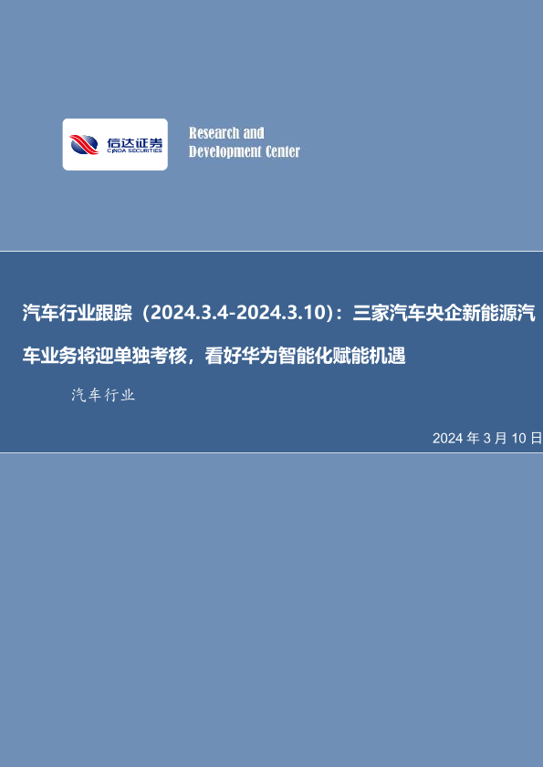 【信达证券】【20240310】汽车行业跟踪:三家汽车央企新能源汽车业务将迎单独考核,看好华为智能化赋能机遇-24页