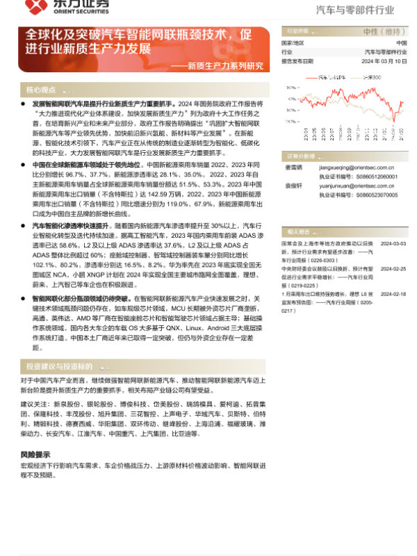 【东方证券】【20240310】汽车与零部件行业新质生产力系列研究:全球化及突破汽车智能网联瓶颈技术,促进行业新质生产力发展-12页