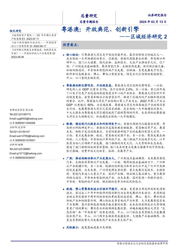 【海通证券】【20240313】粤港澳:开放典范、创新引擎-14页