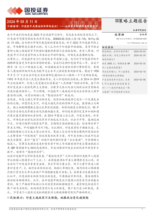 【国投证券】【20240311】不顾诸神:印度股市是莫迪经济学的成功!-31页