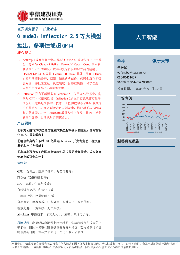 【中信建投证券】【20240310】人工智能行业:Claude3、Inflection-2.5等大模型推出,多项性能超GPT4-17页