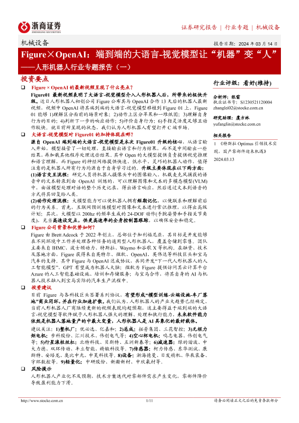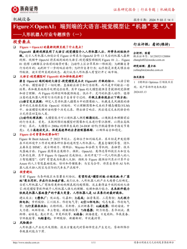 【浙商证券】【20240314】Figure×OpenAI:端到端的大语言-视觉模型让“机器”变“人”-9页