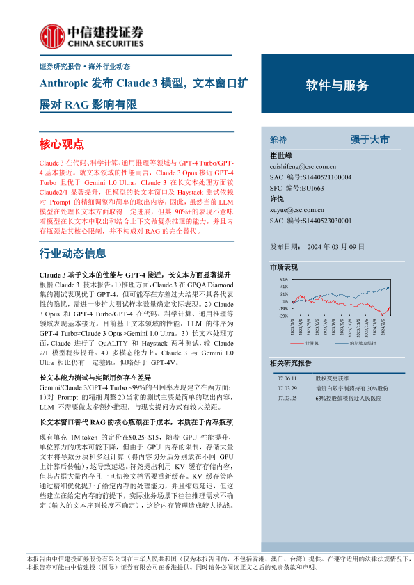 【中信建投证券】【20240309】软件与服务行业:Anthropic发布Claude+3模型,文本窗口扩展对RAG影响有限-19页