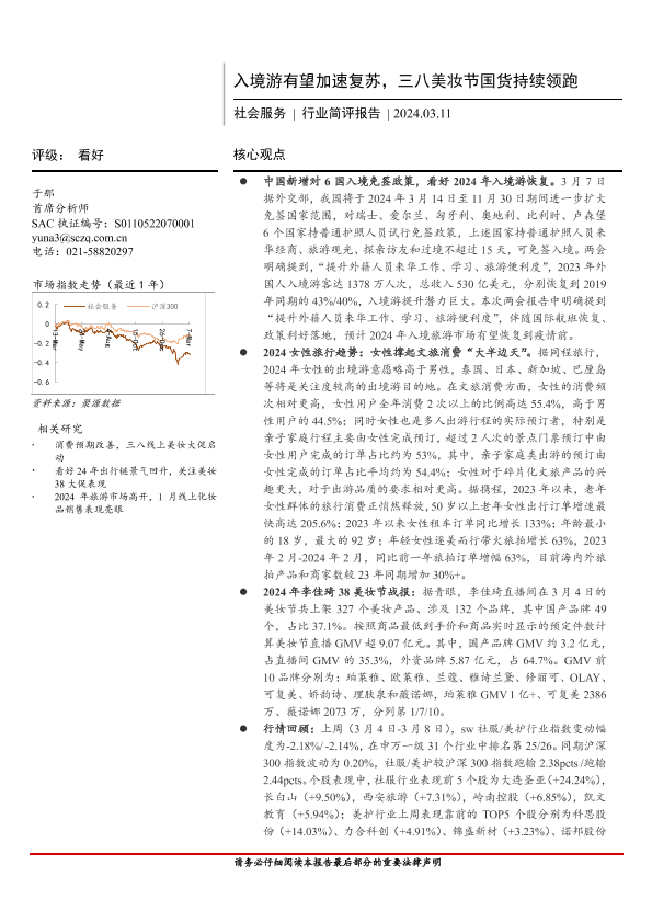 【首创证券】【20240311】社会服务行业简评报告:入境游有望加速复苏,三八美妆节国货持续领跑-13页