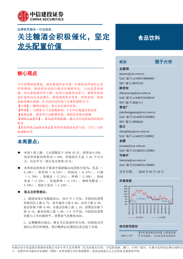 【中信建投证券】【20240310】食品饮料行业:关注糖酒会积极催化,坚定龙头配置价值-24页
