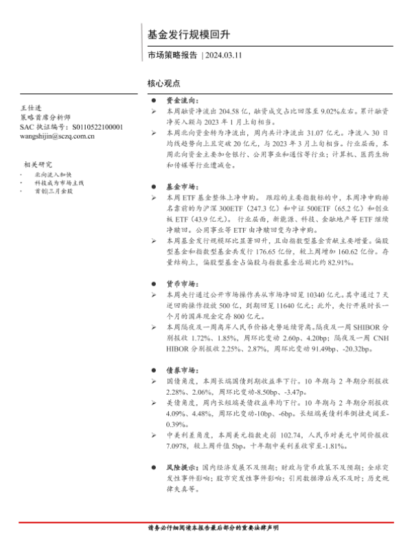【首创证券】【20240311】市场策略报告:基金发行规模回升-12页