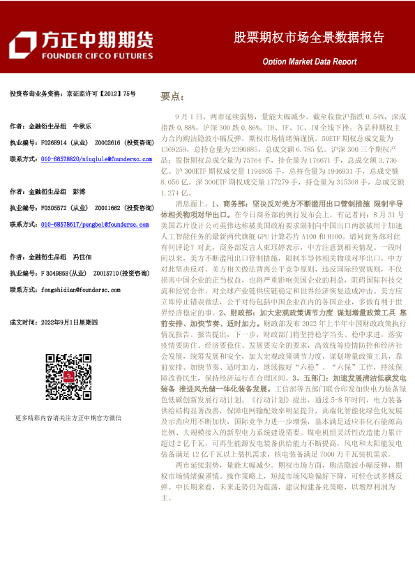 【方正中期期货】【20220901】股票期权市场全景数据报告-22页
