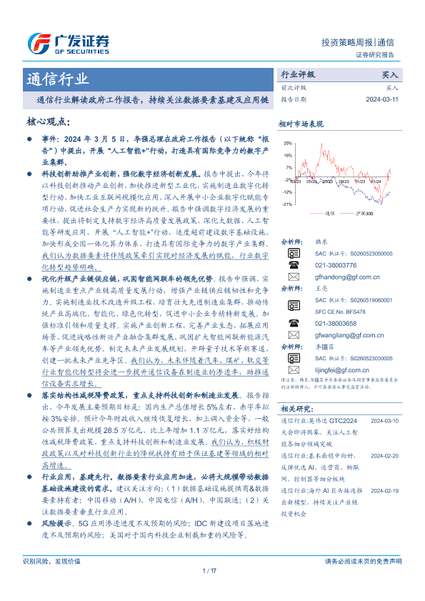 【广发证券】【20240311】通信行业解读政府工作报告,持续关注数据要素基建及应用链-17页
