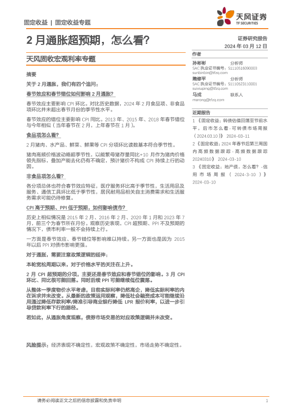 【天风证券】【20240312】天风固收宏观利率专题:2月通胀超预期,怎么看?-16页