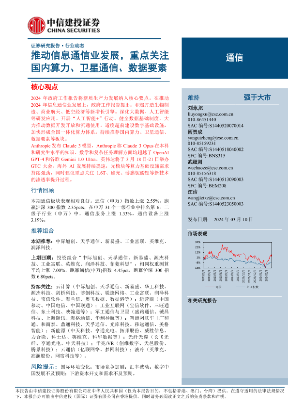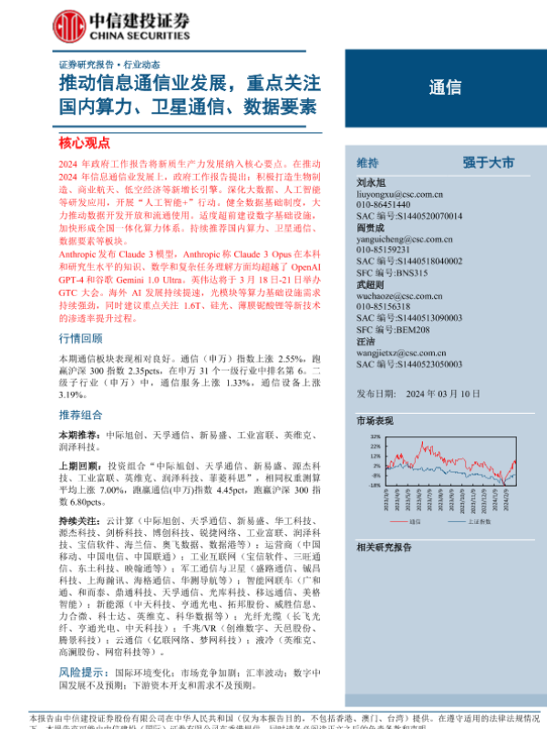 【中信建投证券】【20240310】通信行业:推动信息通信业发展,重点关注国内算力、卫星通信、数据要素-16页