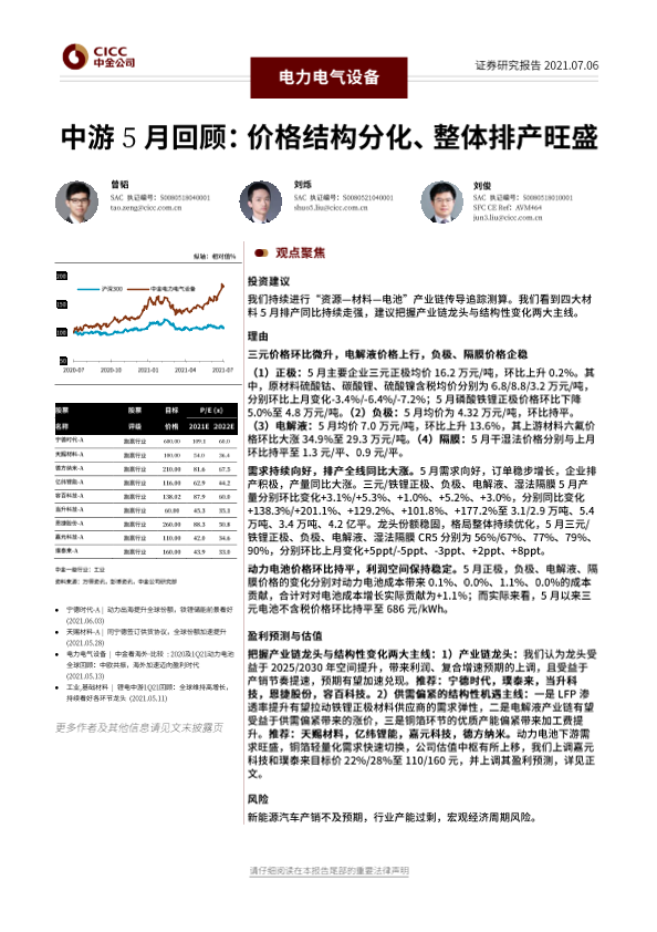 【中金公司】【20210706】电力电气设备行业中游5月回顾:价格结构分化、整体排产旺盛-23页