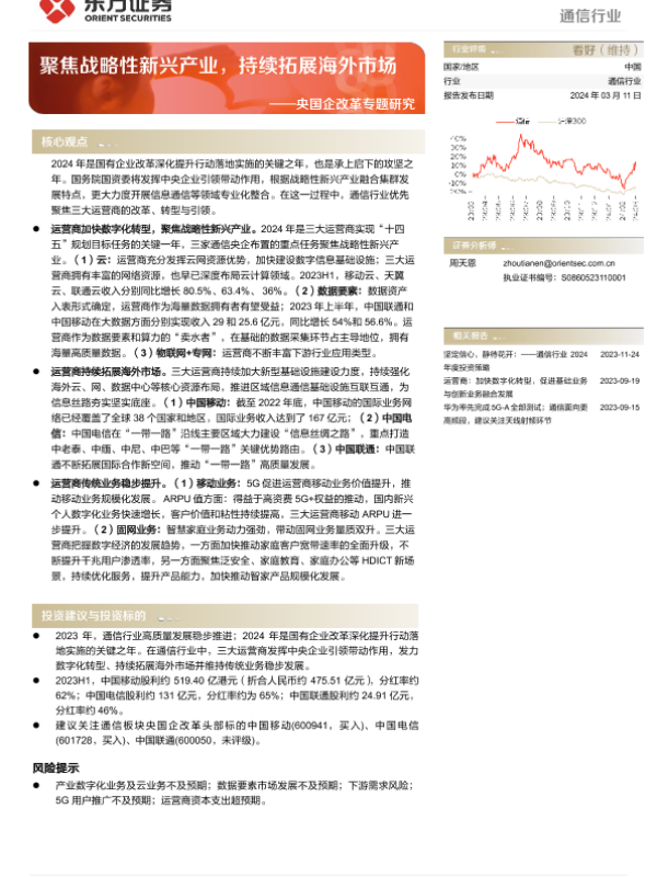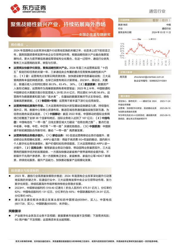 【东方证券】【20240311】通信行业央国企改革专题研究:聚焦战略性新兴产业,持续拓展海外市场-16页