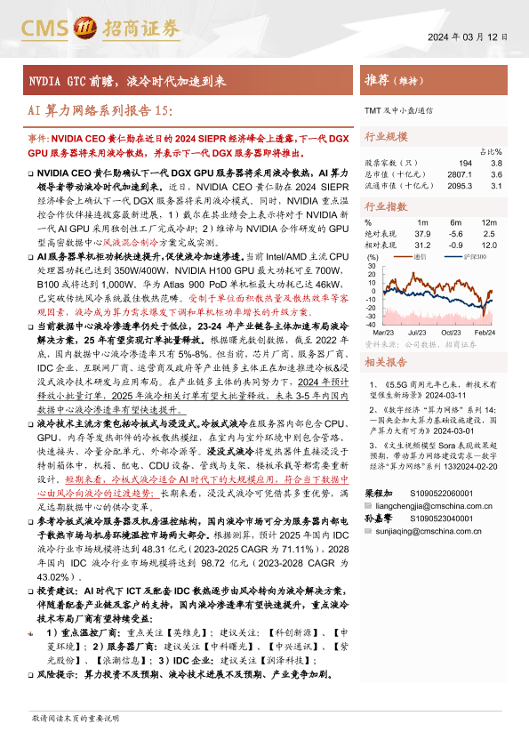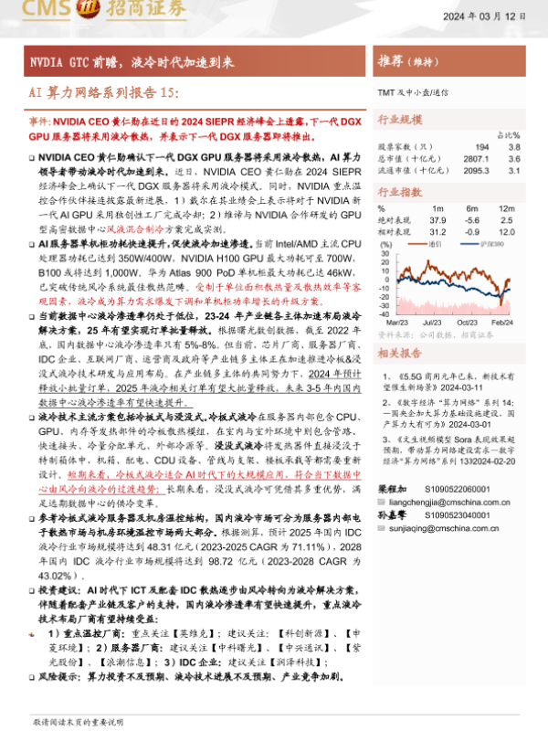 【海通证券】【20240312】通信行业AI算力网络系列报告15:NVDIA+GTC前瞻,液冷时代加速到来-16页