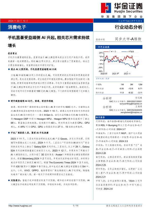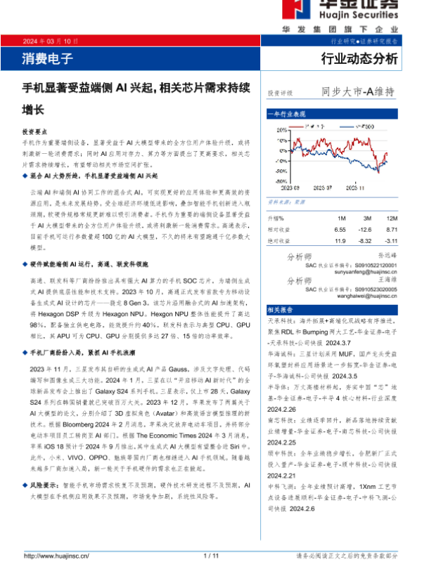 【华金证券】【20240310】消费电子行业动态分析:手机显著受益端侧AI兴起,相关芯片需求持续增长-11页
