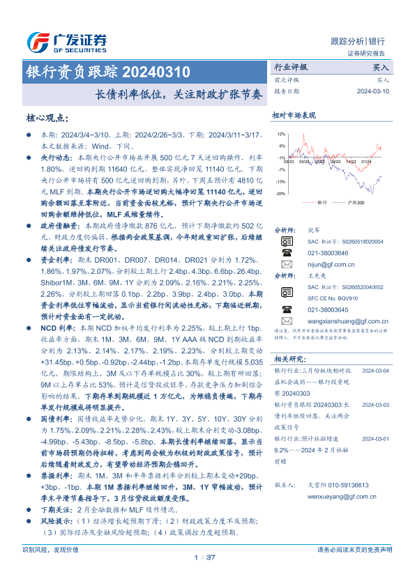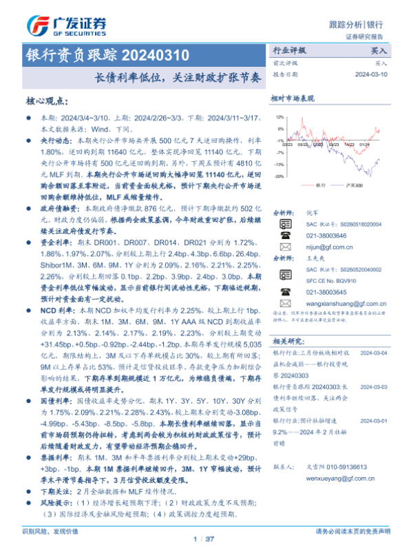 【广发证券】【20240310】银行业银行资负跟踪:长债利率低位,关注财政扩张节奏-37页