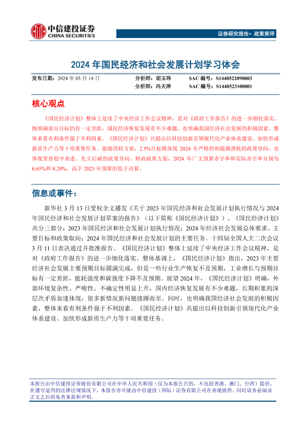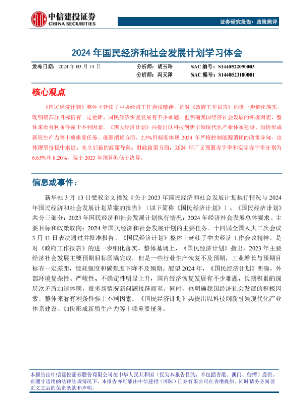 【中信建投证券】【20240314】政策简评:2024年国民经济和社会发展计划学习体会-17页