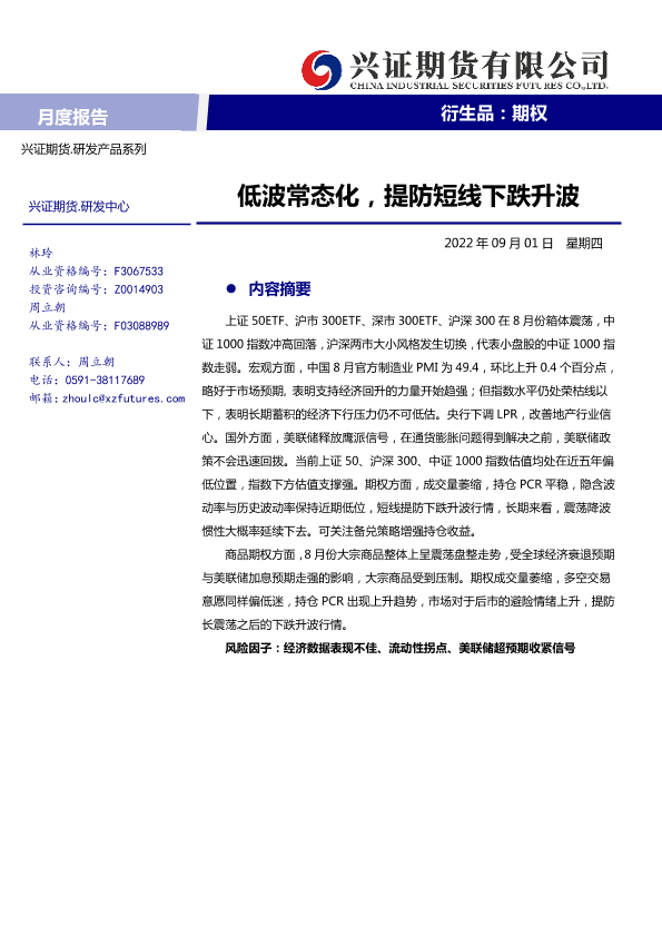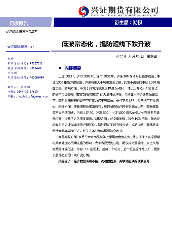 【兴证期货】【20220901】衍生品期权月度报告:低波常态化,提防短线下跌升波-16页