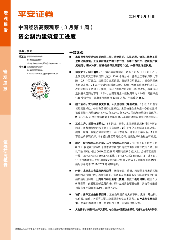 【平安证券】【20240311】中国经济高频观察(3月第1周) 资金制约建筑复工进度-13页