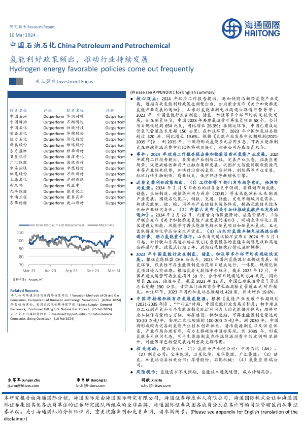 【海通国际】【20240310】中国石油石化行业:氢能利好政策频出,推动行业持续发展-11页