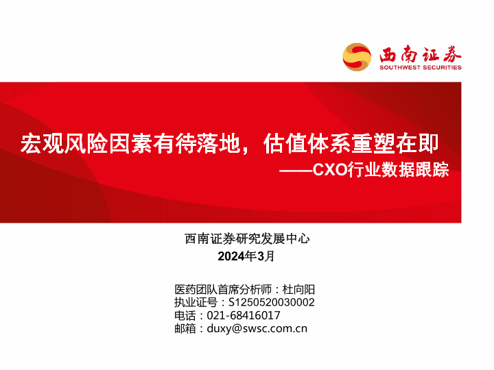 【西南证券】【202403】CXO行业数据跟踪:宏观风险因素有待落地,估值体系重塑在即-22页