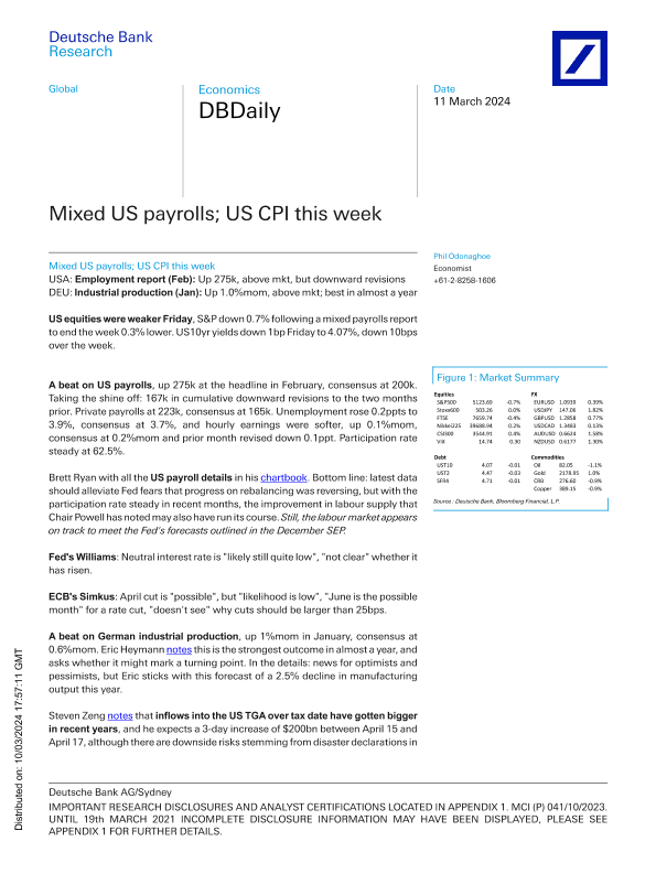 【Deutsche Bank】【20240311】Deutsche Bank-DBDaily Mixed US payrolls; US CPI this week-11页