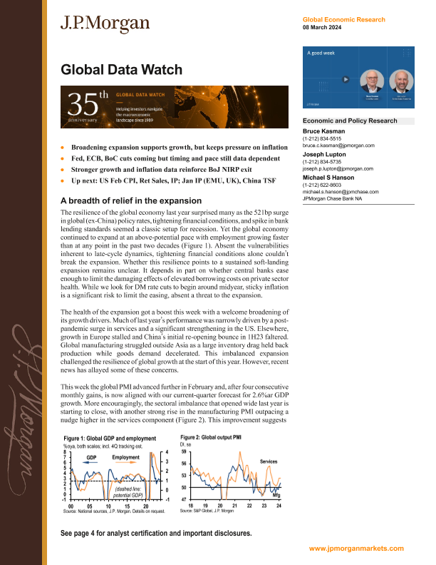 【J.P. Morgan】【20240308】Global Data Watch A breadth of relief in the expansion-7页