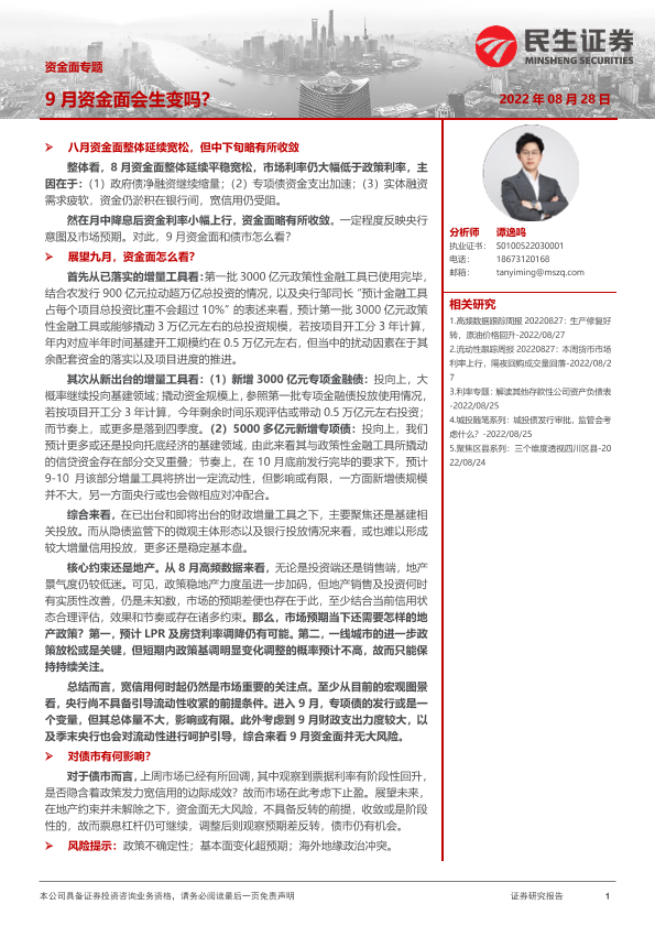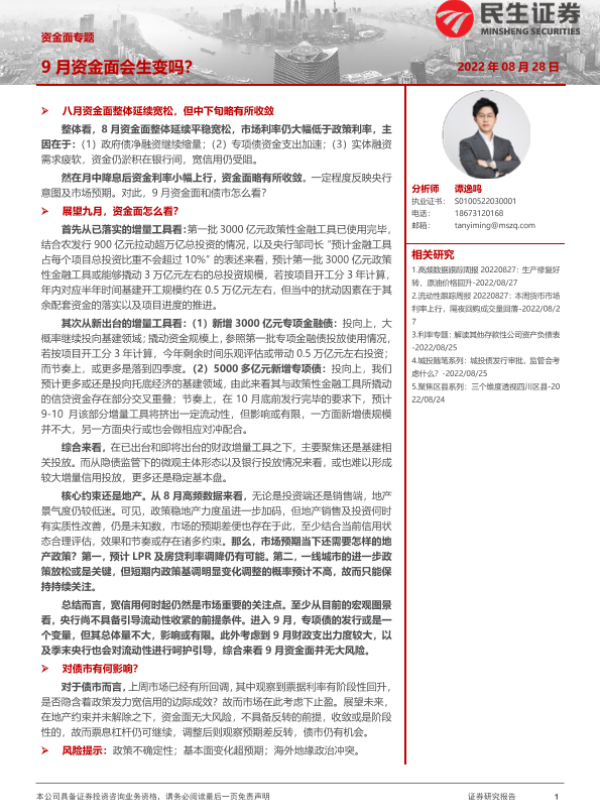 【民生证券】【20220828】资金面专题:9月资金面会生变吗?-20页