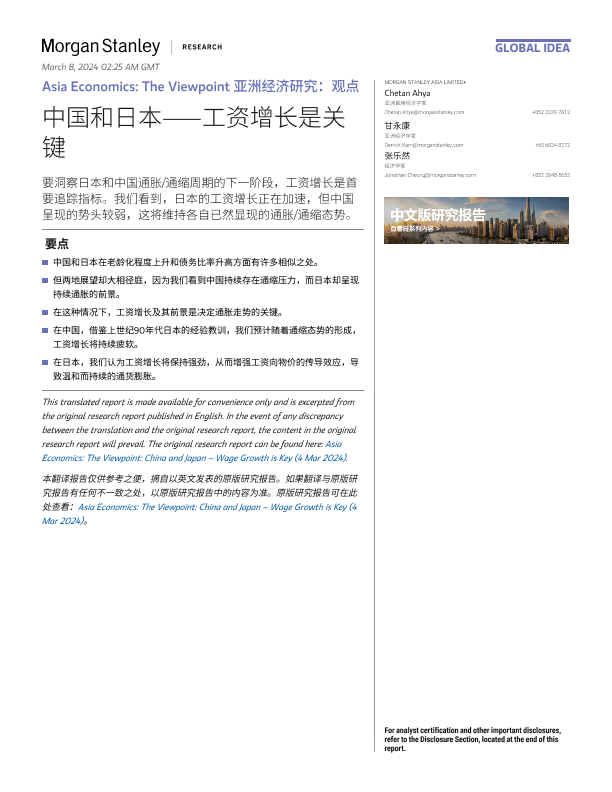 【Morgan Stanley】【202403】亚洲经济研究:观点 中国和日本——工资增长是关键-10页