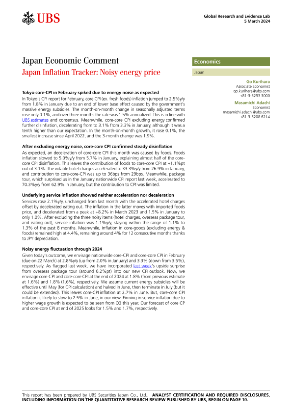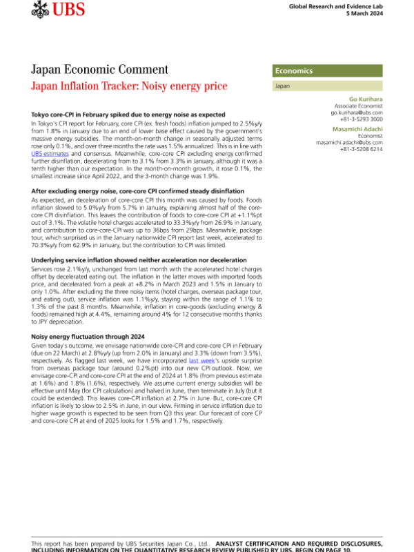 【UBS Securities Japan Co.&Ltd.】【20240305】Japan Inflation Tracker Noisy energy price-14页