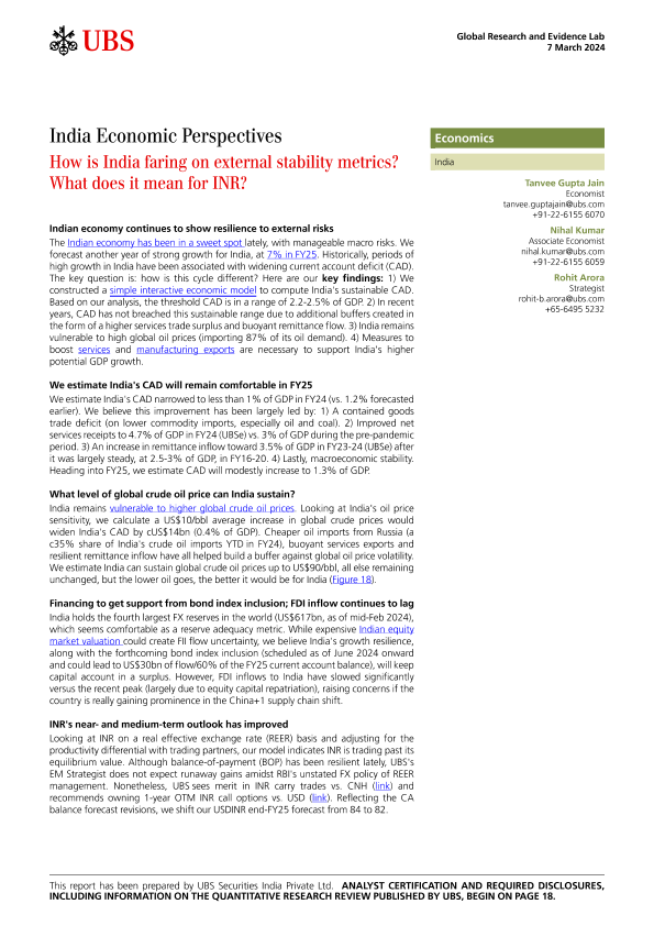 【UBS Securities India Private Ltd.】【20240307】India Economic Perspectives How is India faring on external stability metrics?-21页