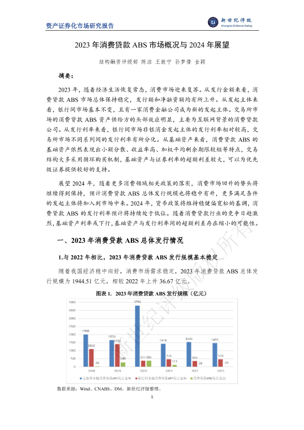【结构融资评级部】【2023】2023年消费贷款ABS市场概况与2024年展望-10页