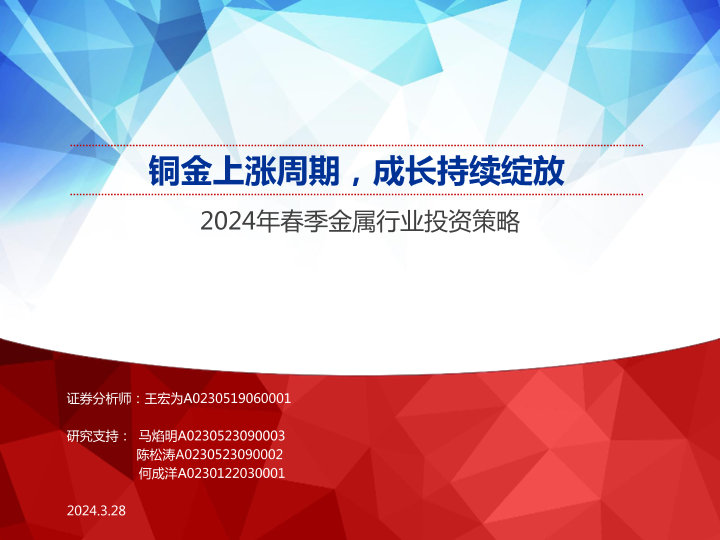 【申万宏源】【20240328】2024年春季金属行业投资策略:铜金上涨周期,成长持续绽放-27页