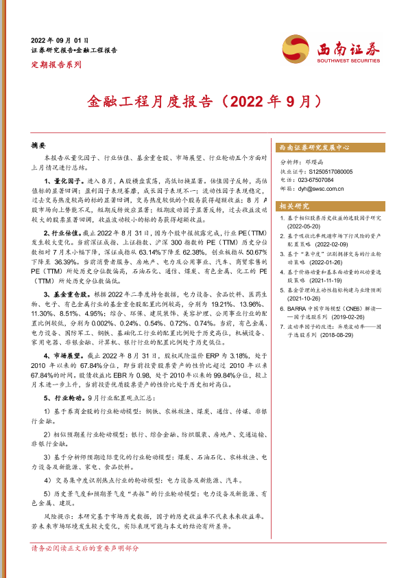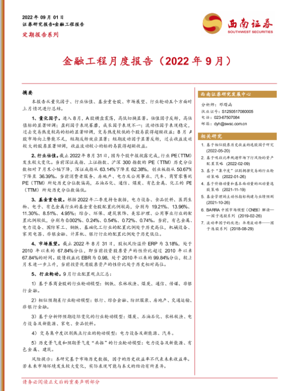【西南证券】【20220901】金融工程月度报告(2022年9月)-21页