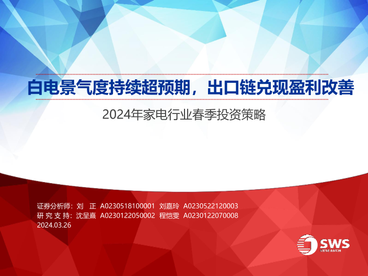 【申万宏源】【20240326】2024年家电行业春季投资策略:白电景气度持续超预期,出口链兑现盈利改善-45页