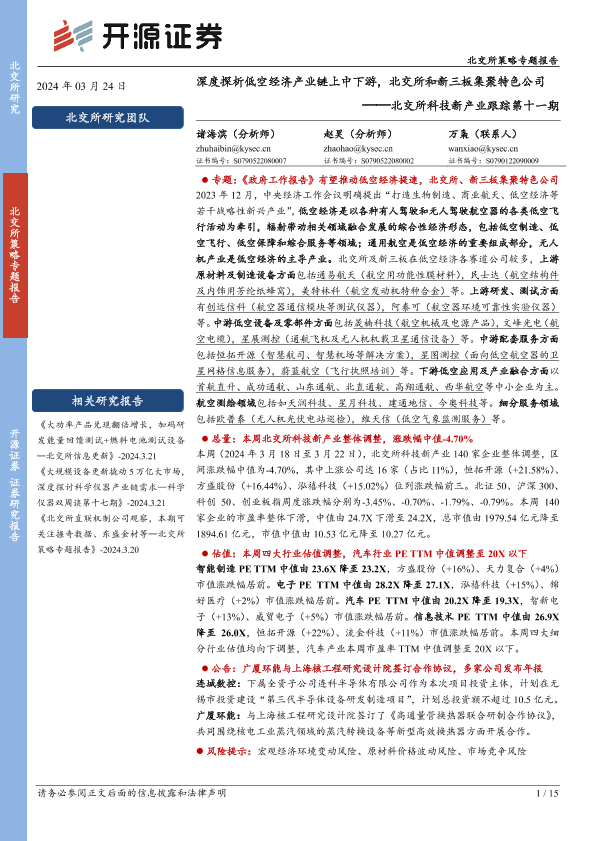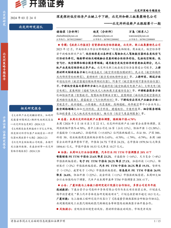 【开源证券】【20240324】北交所科技新产业跟踪第十一期:深度探析低空经济产业链上中下游,北交所和新三板集聚特色公司-15页