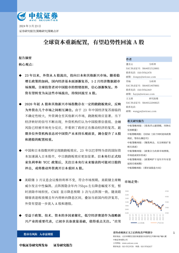 【中航证券】【202403】策略点评:全球资本重新配置,有望趋势性回流A股-10页