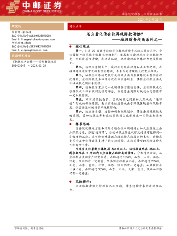 【中邮证券】【20240326】城投财务视角系列之一:怎么看化债会议再提账款清偿?-15页