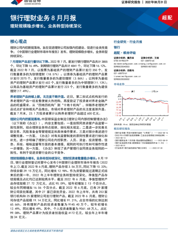 【国信证券】【20220831】银行业理财业务8月月报:理财规模稳步增长,业务转型持续深化-17页