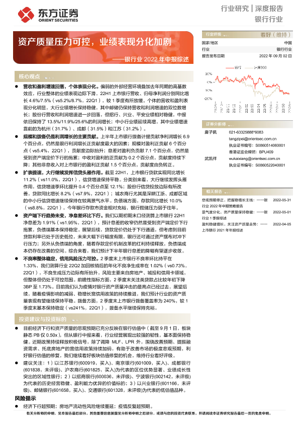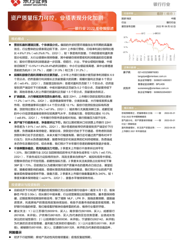 【东方证券】【20220902】银行业2022年中报综述:资产质量压力可控,业绩表现分化加剧-21页